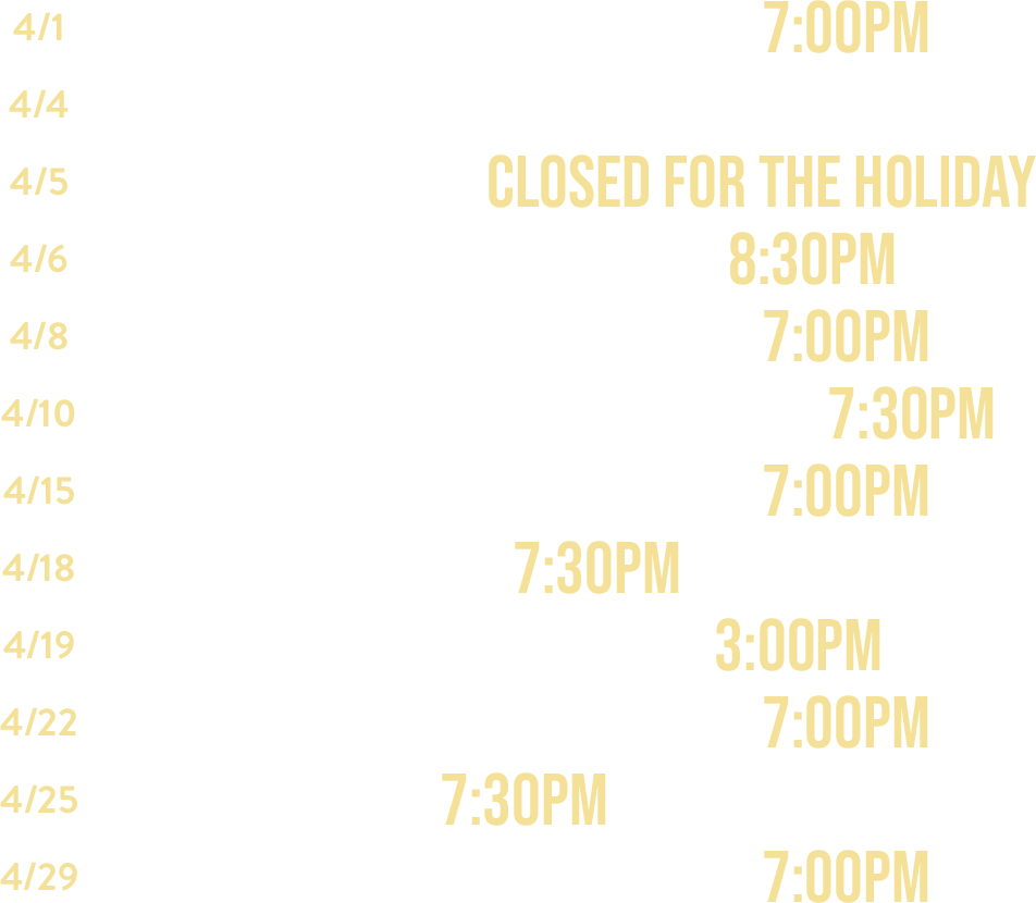 CHECK OUT THE EVENTS WE HAVE ON TAP IN APRIL!